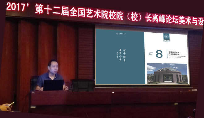 院长桂宇晖就“工科院校的艺术设计学科发展”做了发言。陈汗青对本分论坛的交流成果进行了总结,其中指出中国地质大学(武汉)在国家需求重大领域如:生态环境的修复与设计、探月计划的重大装备设计和珠宝艺术国际化的道路中,找到了具有不可替代,服务国家战略的学科发展方向,逐步形成了工科院校中发展艺术教育的鲜明特色与新途径。
