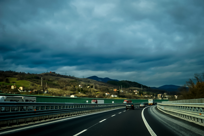 中午一点,访学团抵达佛罗伦萨。午餐过后,访学团继续朝米兰进发。在穿过亚平宁山区的途中,海拔逐渐升高,直至上千米,公路上短暂升起了薄雾,温度亦逐渐降低。马林老师借此机会为访学团普及意大利地理及气候概况,并深情地讲述道:“曾经,但丁去求学要翻越这座大山,用时一天;如今修好了高速公路,翻山越岭只要一个多小时便能完成。”感叹过去的不易与现代科技的蓬勃发展。