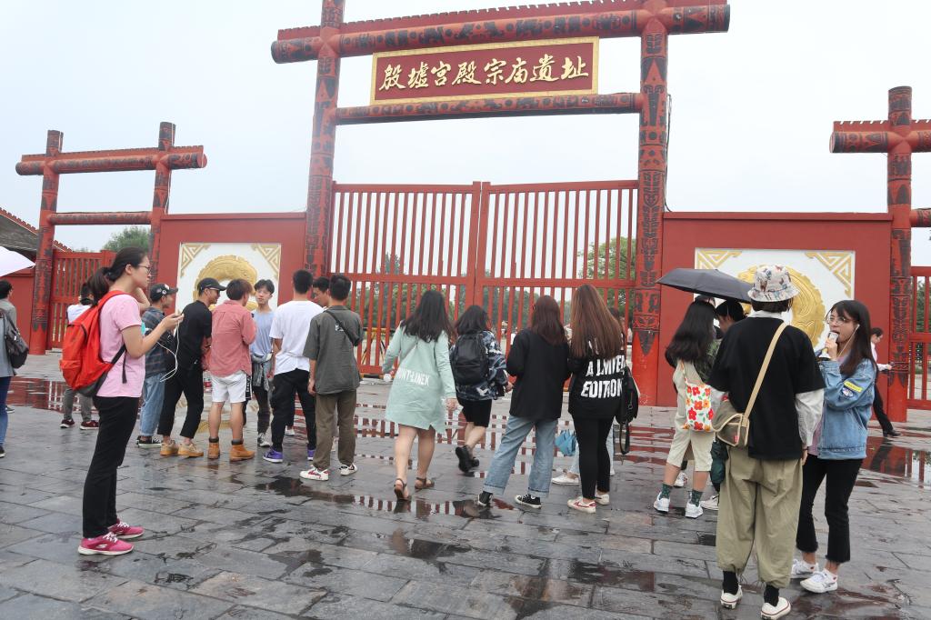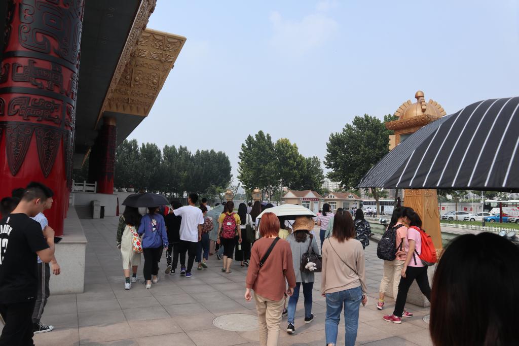 7月10号清晨,天蒙蒙亮,山中弥漫着雾气,伴随着凉爽的山风,同学们整装待发,经过了两个小时的长途跋涉,上午10点抵达了宏伟的殷墟宫殿宗庙遗址,这里是中国历史上被证实的第一个都城遗址,首先印入眼帘的是殷墟博物馆,跟随着讲解老师的步伐,同学们推开了历史的大门,了解了商朝与周朝时期古老的青铜器,轻巧玲珑的玉器,与神奇的甲骨文文化,同学们心中的疑问也慢慢的解开,紧跟脚步我们来到了殷墟车马坑展厅,据解说老师介绍,这里证明了我国是世界上最早发明和使用车的文明古国之一,一辆马车比现代的SUV还要大的多,有的马车还有陪葬的奴隶,让人不禁感慨奴隶社会的封建与残忍,最后一站是妇好墓,这是商王武丁为祭祀妻子妇好而修建的宗庙建筑,传说妇好曾多次参与国家祭祀,为国征战,商王对于她的去世十分痛心,所以破例修建了这座宗庙,随葬品也极为丰富,可见当时妇好的地位与影响力。