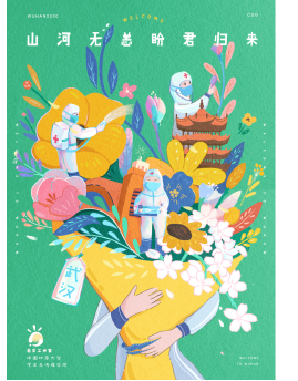 视觉传达专业徐莉觅灮工作室,以“山河无恙,盼君归来”为主题,设计了系列海报作品,欢迎莘莘学子重回武汉。