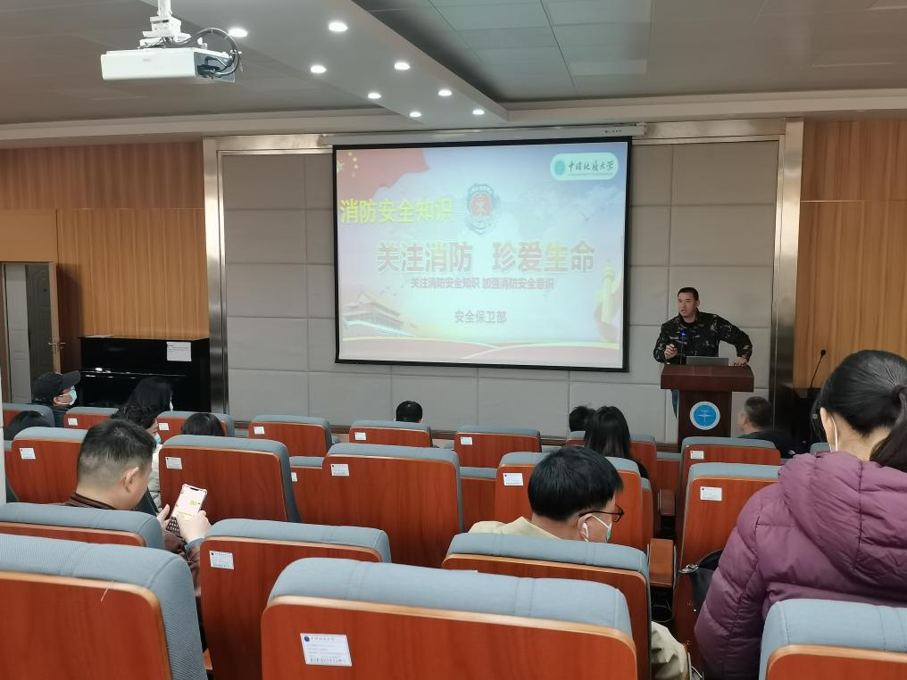 全体教职工展开主题为“关注消防,珍爱生命”的消防安全知识培训,刘科长为大家详细介绍了发生火灾造成的严重后果,例如一场火灾中仅仅燃烧40秒就可以将一间住房烧成灰烬,之后也举了很多生动的案例强调了掌握灭火器使用技巧的重要性和必要性。